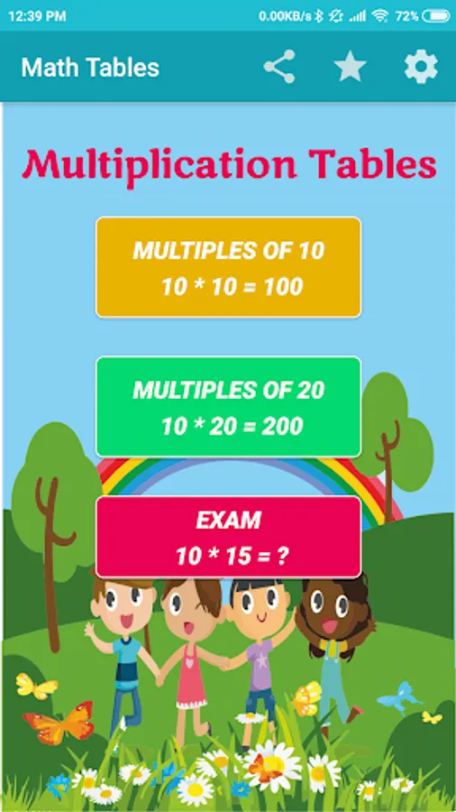 This app has both supports for multiples of 10 and 20. Multiplication table for kid also added for kids.