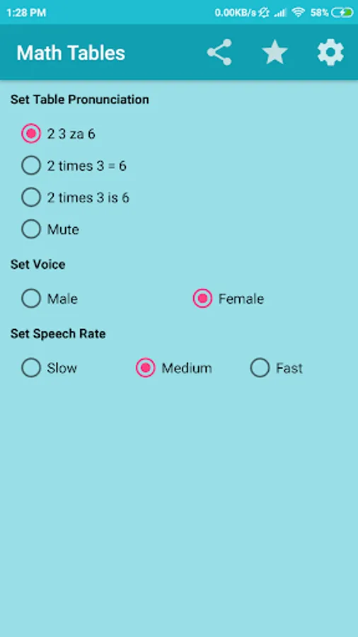 Tables from 1 to 100 have been added, just select one table and 10 or 20 multiples will be shown and audio will be played to make learning quicker.