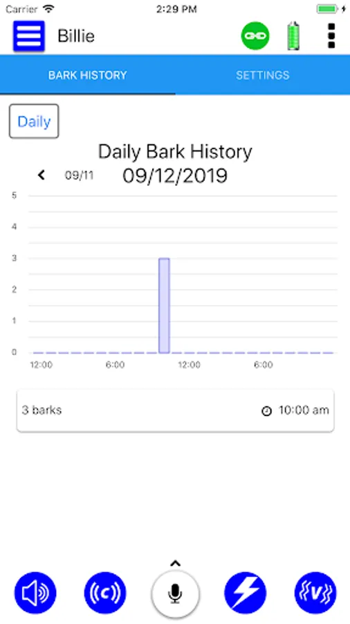 The app controls an unlimited number of collars and lets you create a unique profile for each, including dog name, commands, stimulus level and bark control settings. Includes in-app help screens.