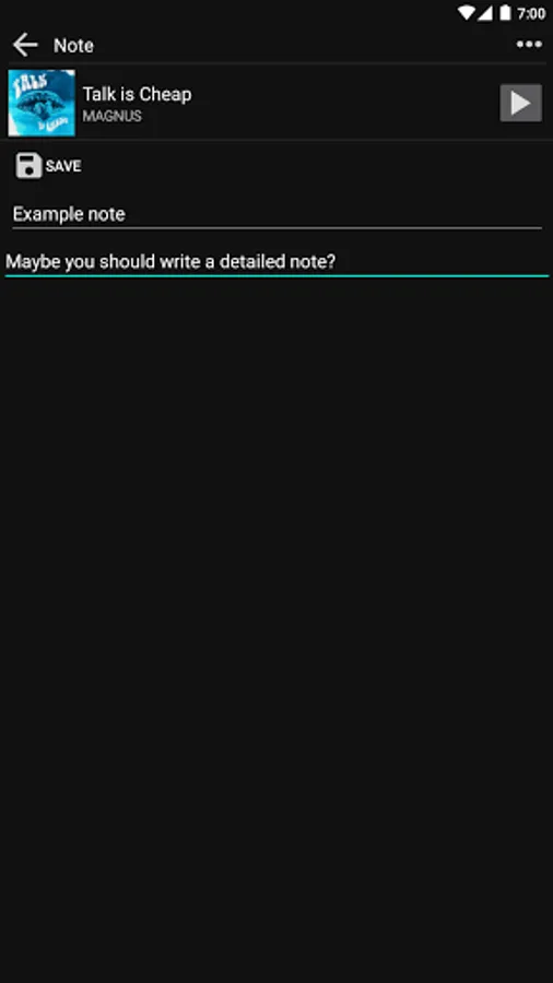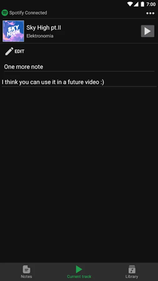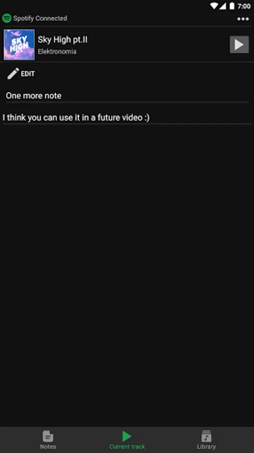 In our application, you can add notes to any Spotify tracks. If you are keeping a playlist with music from movies, TV shows, games, anime, then this application will help you organize all the tracks. This allows you not to get confused and quickly remember which track is from where.