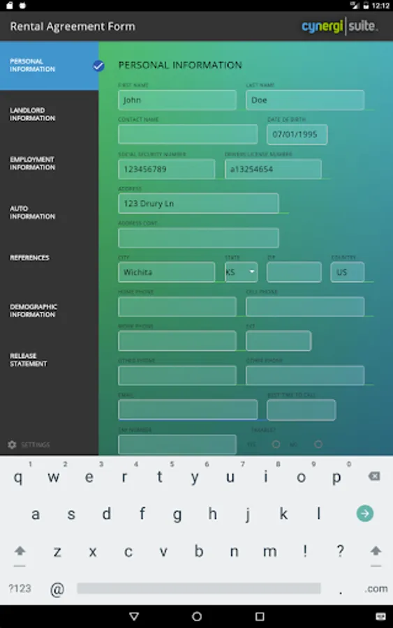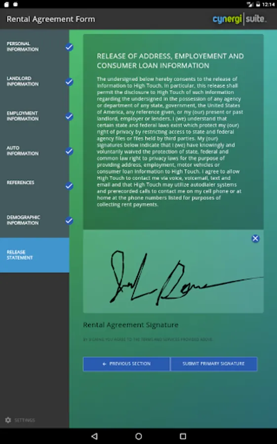 cynergi Suite Rental Application allows companies to streamline their application process via a table device.