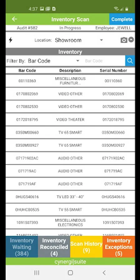 Put your entire inventory in your hands. Say goodbye to external barcode scanners. View your complete idle inventory, in real-time, while you scan items. With the cynergi|suite Inventory Scanning app, you can easily audit your idle store inventory using the camera on any supported mobile device.