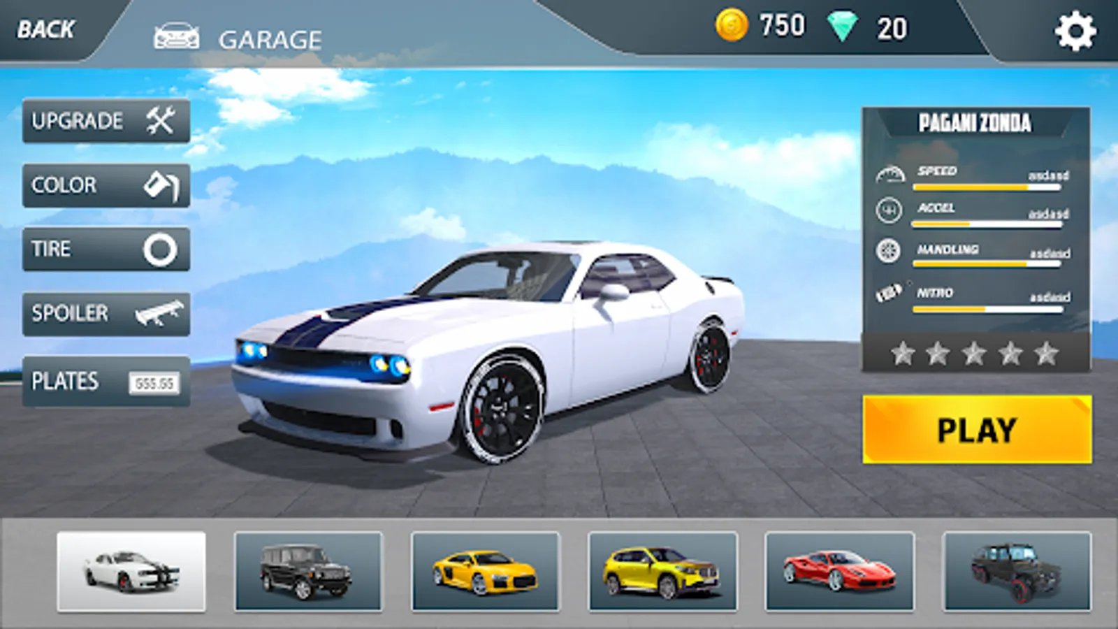 - Engaging mission mode with street racing time-based challenges & car jump.
