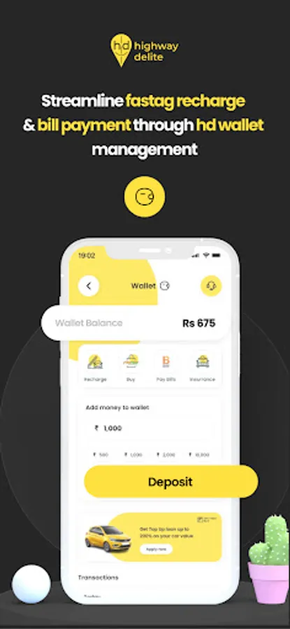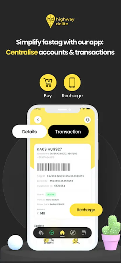 With Highway Delite, managing your FASTag is a breeze! Enter your phone number and access details like recharge options, FASTag wallet balance, transaction history, fitment challan, toll fares, customer info update, tag replacement, and apply for car top-up loans all in one app.