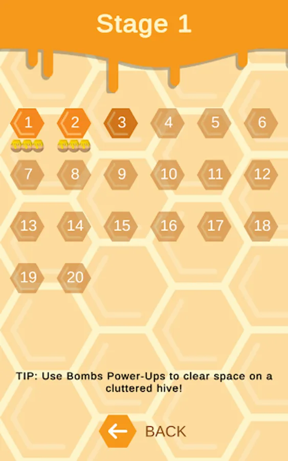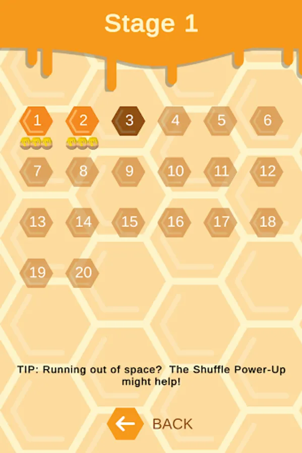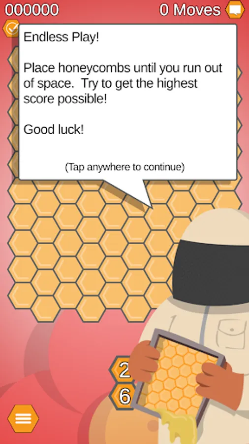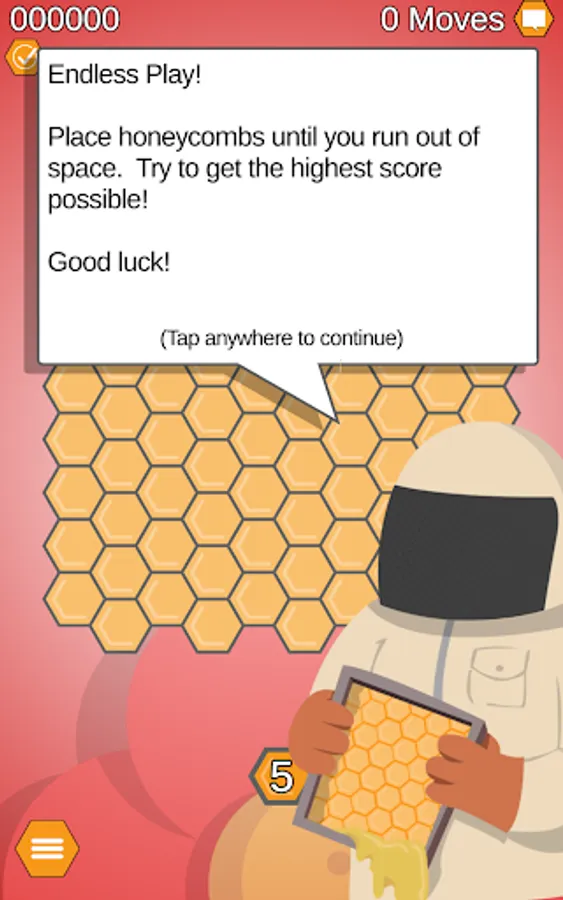 In endless play, you place honeycombs on the hive and try to achieve the highest score possible before you run out of room. Keep playing to try and beat your previous score!