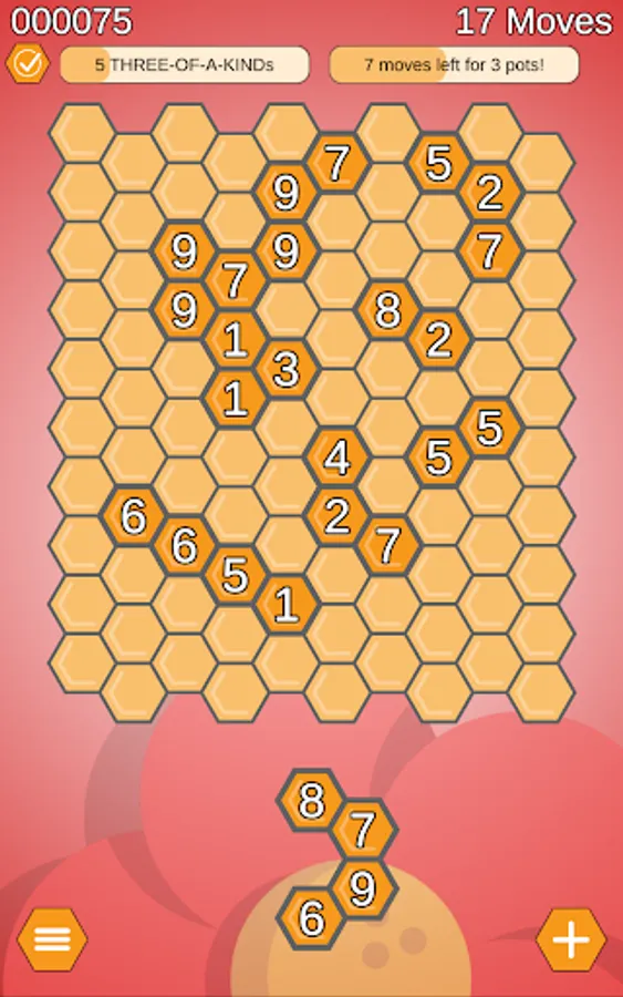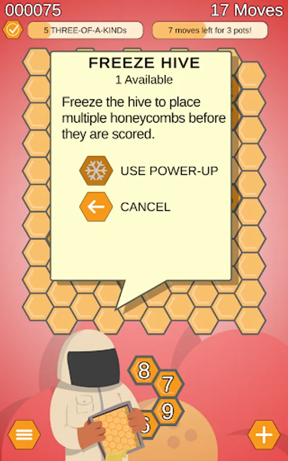 Rotate, drag and drop honeycombs on the hive to create 3-of-a-kinds, straights and combinations to win!