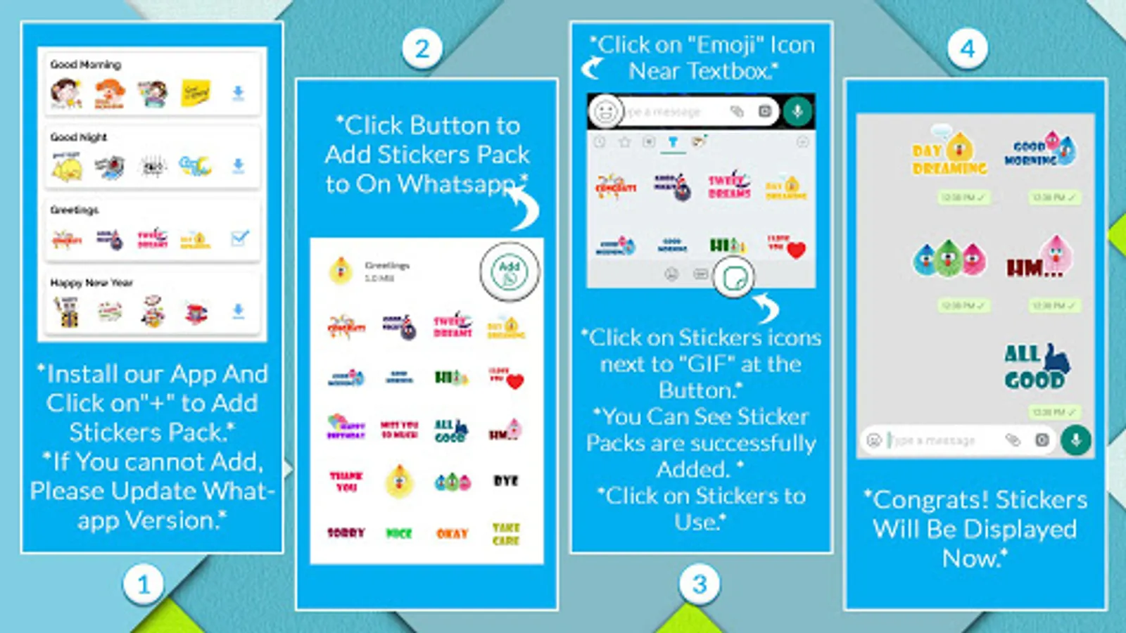 IMPORTANT : The "WhatsApp" name is copyright to WhatsApp, Inc. Sticker Pack for whatsapp is in no way affiliated with, sponsored or endorsed by WhatsApp, Inc.