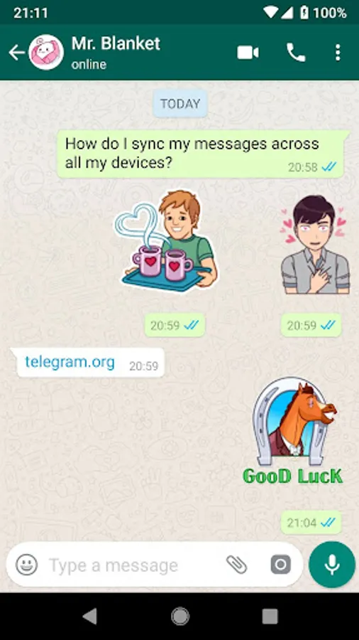 The Telegram Stickers of this application are published with the permission of Telegram, obtained at stickers@telegram.org