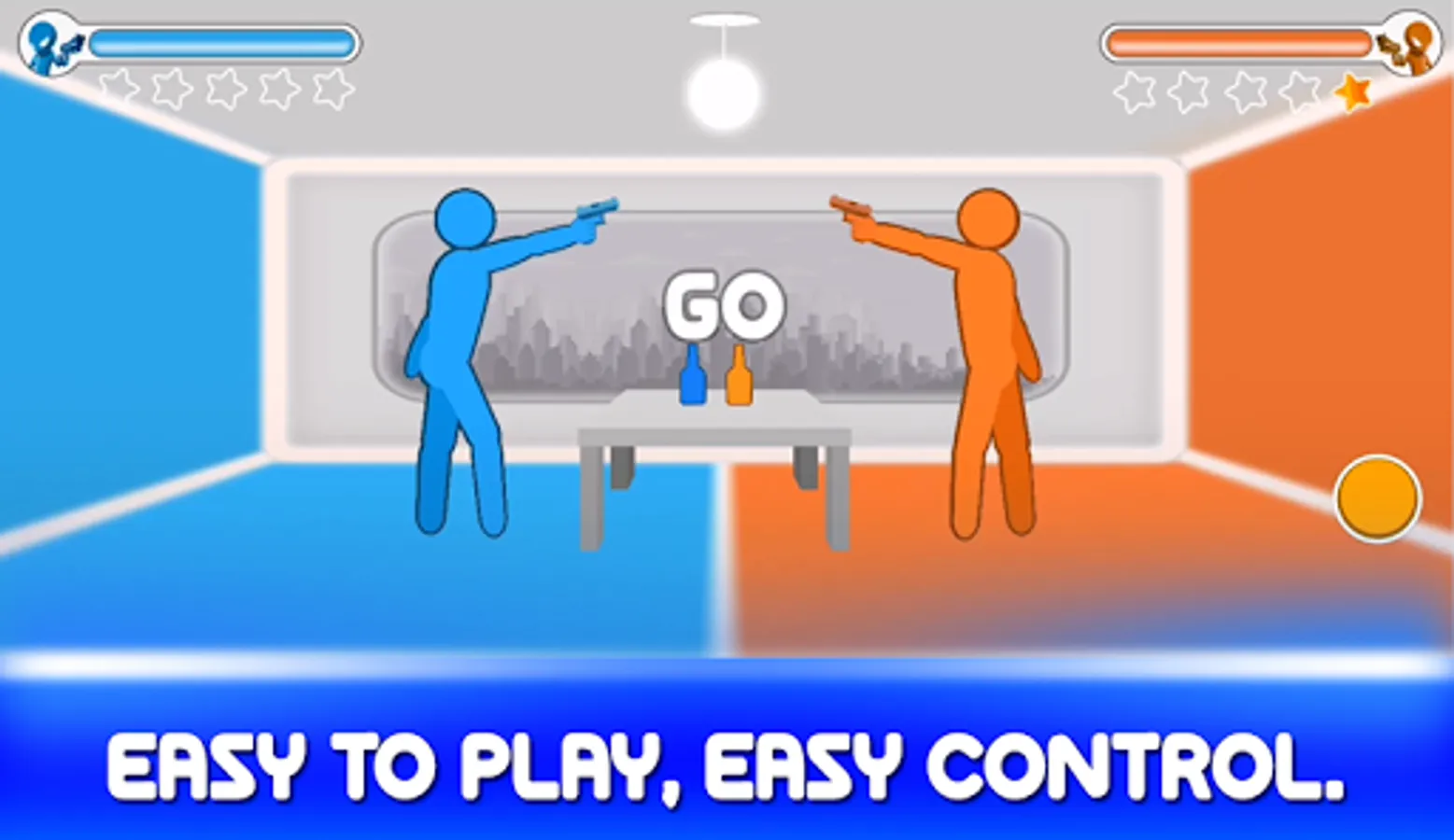 Drunken Duel is an entertaining western game with physics-based one-button control that can be played as two people and one person. In the game, two drunk rag dolls duel. The game rules are very simple, you must first choose which mode you will play. If you want to play the game alone, you should choose 1 player mode. When you select this mode, the computer will match you with a bot playing at random difficulty, each game consists of five matches, to score points in each match, you must lower your opponent's energy level and maintain your own energy level. whose energy is reset first loses and his opponent scores and wins the game with a total of five points.