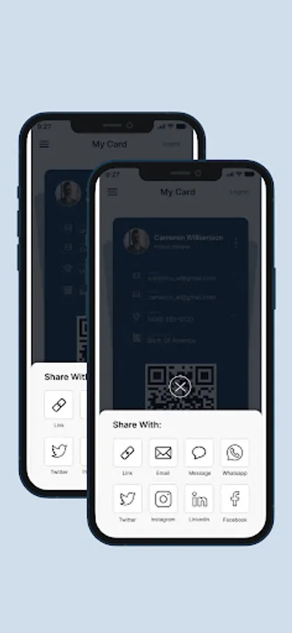 2) Share your virtual card using your unique QR code, email, text message, social media. You can also send anyone the link to your business card.
