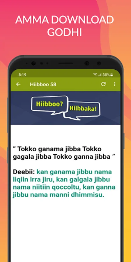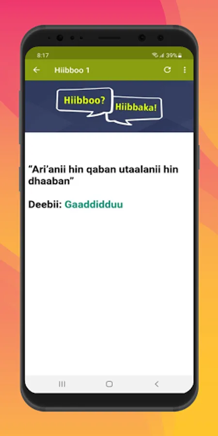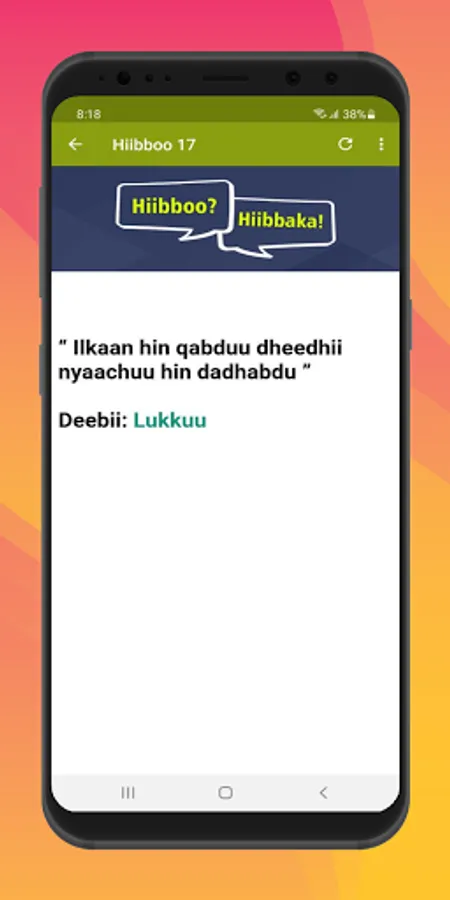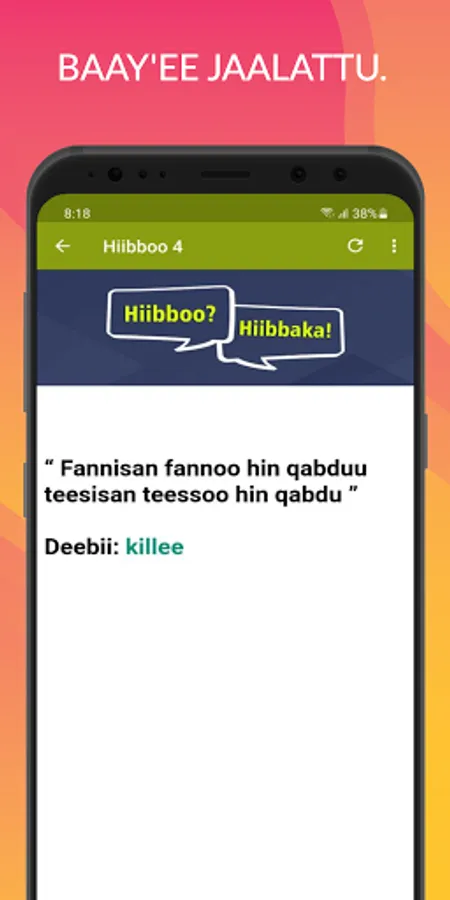 Seerota tapha kanaa keessaa inni tokko kan nama lamaan (gaafataa fi gaafatamaa) taphatamu ta’uu isaati. Namooti lameen gaafataa fi gaafatamaa erga ta’an booda gaafataan gaaffii isaa dhiyeessa. Namni gaafatamu sunis wantoota deebii itti fakkaatan maqaa dhahuun deebisuf yaalii godha. Yoo deebii sirritti argate gaafataan ‘beekte ykn argatte’ jadheenii bakka wal-jijjiirun, jachuunis inni gaafataa ture gaafatamaa ta’un fi inni gaafatamaa ture gaafataa ta’un tapha isaanii itti fufu.