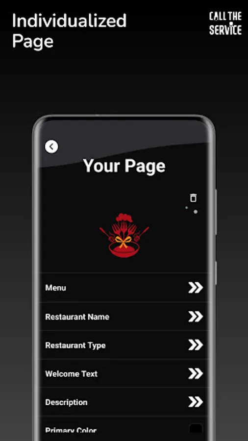 With "Call the Service" you can easily create QR codes for every table in your restaurant. As soon as your guests scan the QR code, they are taken to an individually configurable page that you can set directly in the app. Here you can customize colors, upload your logo, present the menu and add a restaurant description.