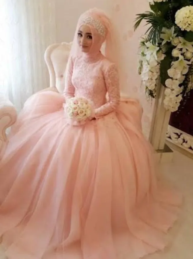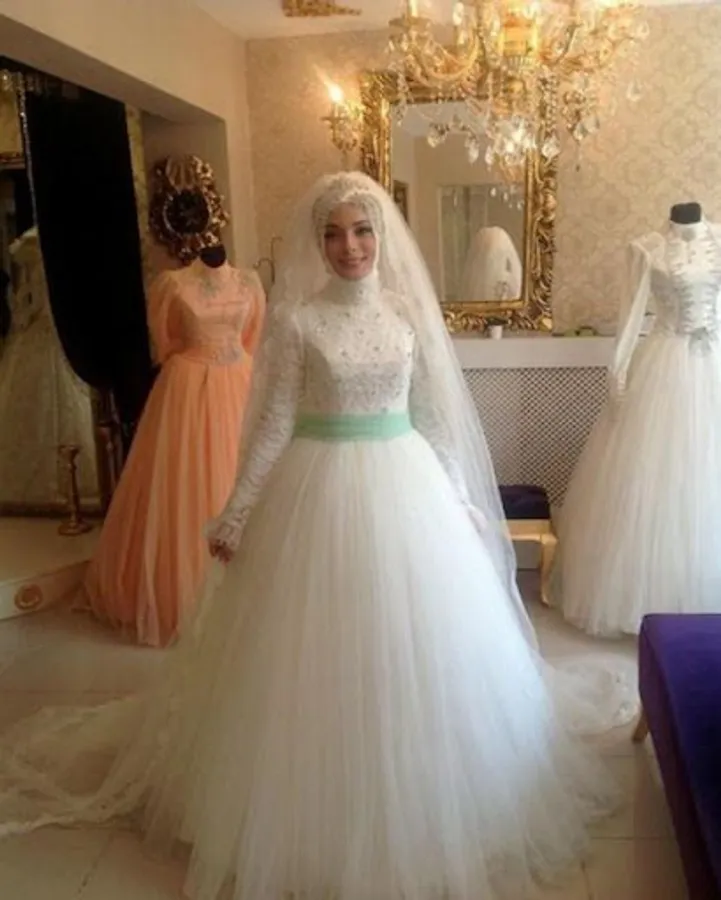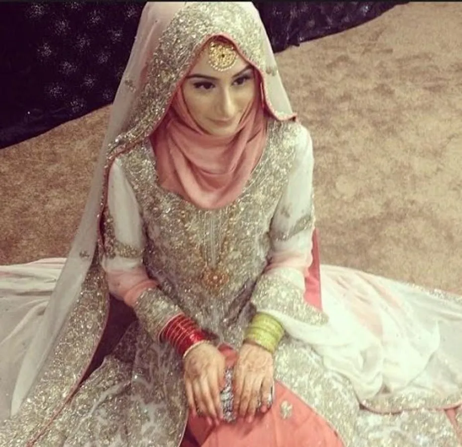 Many Muslim brides tend to choose hijab wedding dresses that are traditional, and white. Brides from subcontinent of Asian prefer shalwar-qameez that is scarlet, with henna decorated feet and hands in intricate and beautiful patterns.