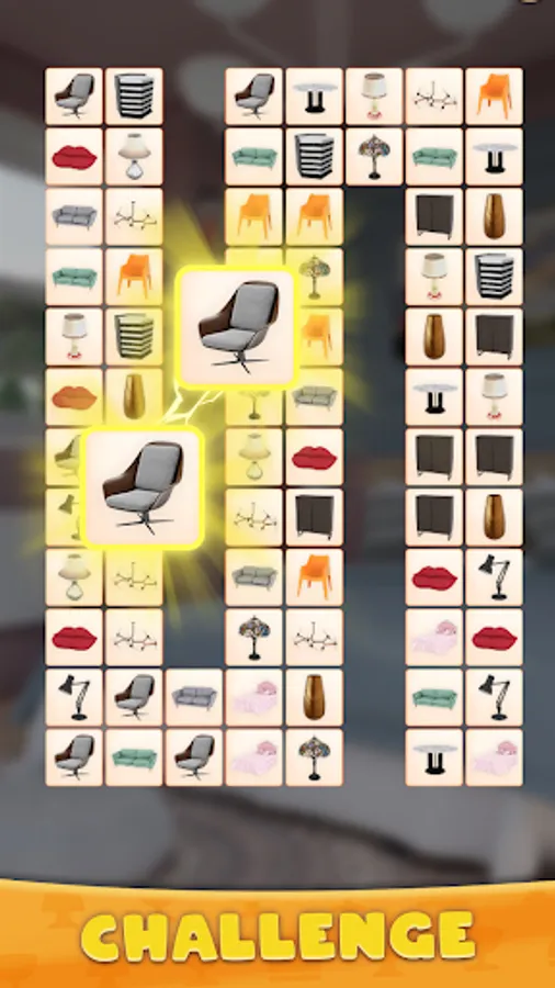 The puzzle part is simple but challenging! Find two identical tiles, tap and connect them with a link line and make them disappear, clear all the tile pairs on board before the time is over! This game is a great exercise for your memory, observation and concentration. Enjoy linking and collecting classic furniture pieces such as sofa, chairs, cabinet, decorations and more!