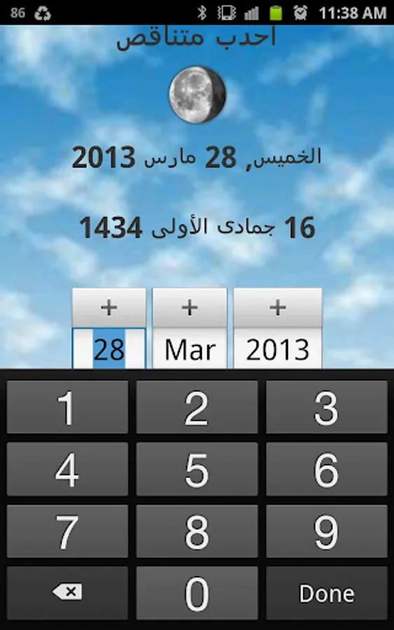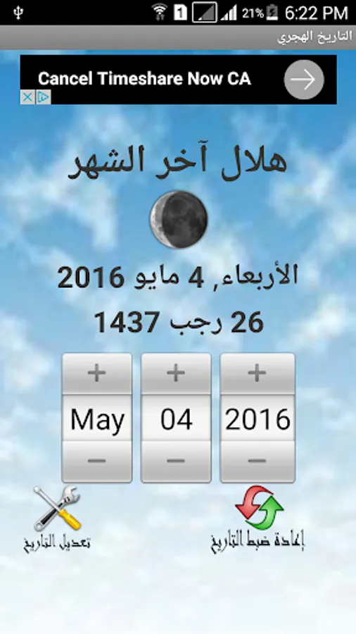 Hijri Calendar enables you to know the daily Hijri Date and the moon phases