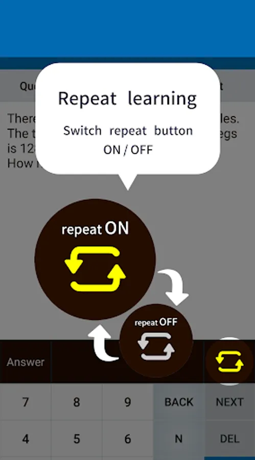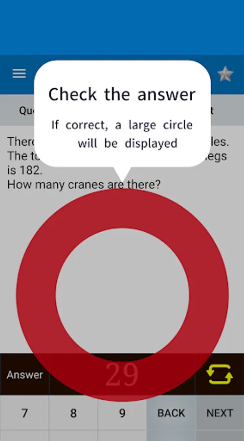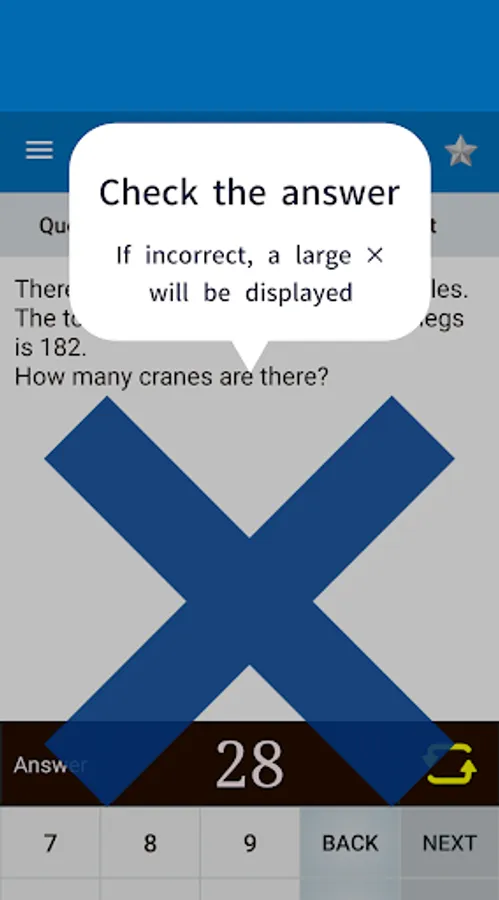 A question appears in the upper half, and you can enter the answer with the numeric keypad, symbol input buttons, etc. of the lower half.