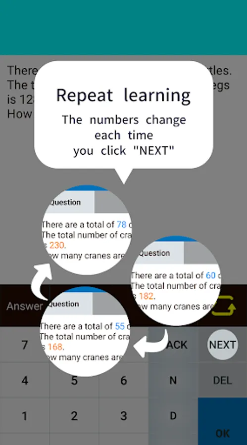 However, ITerativ app has succeeded in giving multiple word problems repeatedly like calculation problems by changing the numerical values.