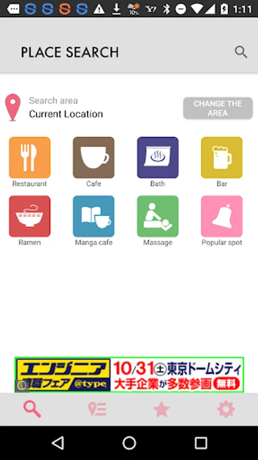 This simple app allows you to search for nearby restaurants, cafes, hot spring spas, manga cafes, etc.