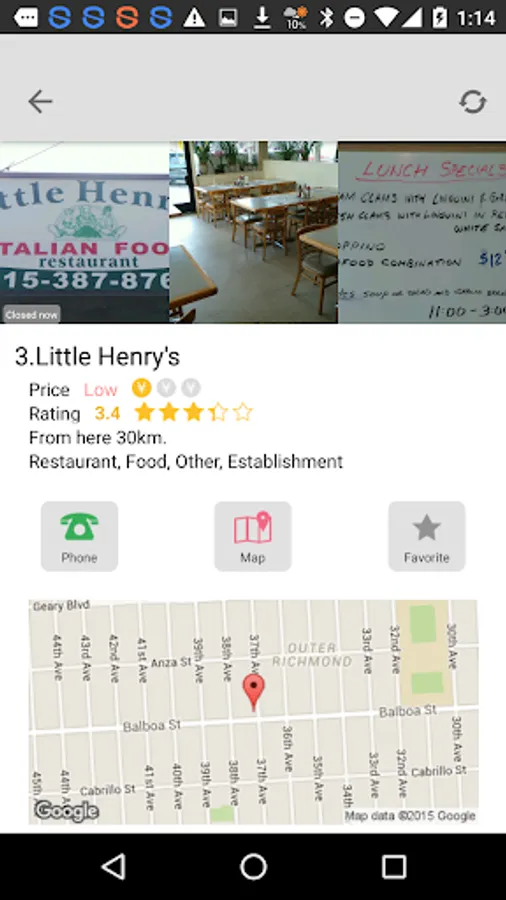 - The location's address, user comments, telephone number, home page, etc. is displayed in the detailed information.
