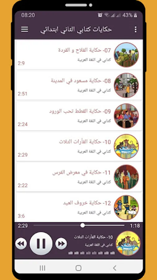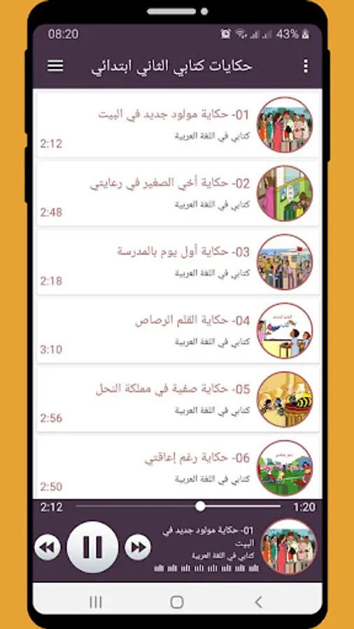 The application collects all the stories of my book in the Arabic language, the second primary level, arranged according to units, with a melodious and expressive voice.