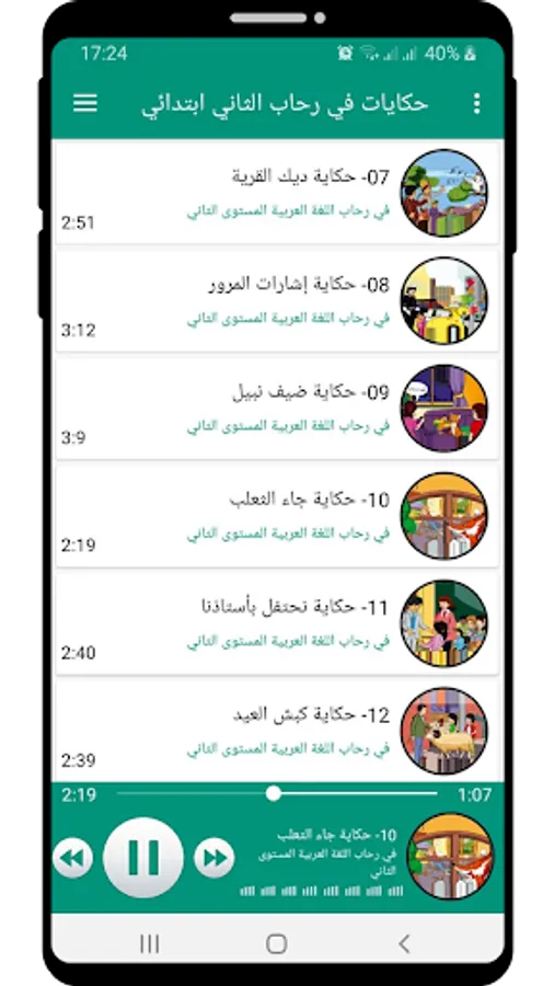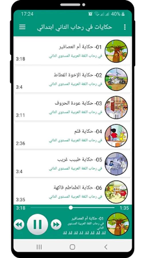 The application collects all the stories in the field of the Arabic language, the second primary level, arranged according to the units, with a melodious and expressive voice.