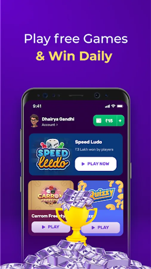 * All-in-one: Play real money games like Speed Ludo, Carrom Freestyle, Quizzy