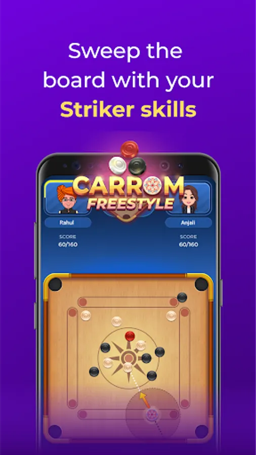 Calling all Carrom online lovers! Everyone is playing Carrom Freestyle. Your search for the best carrom app ends now. It is a fun & exciting casual board game that can be played by up to four players. To win carrom game & real cash rewards, you must pocket the maximum number of pucks including the queen & its cover. Play carrom game in 3 easy steps.