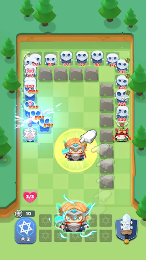 You have the ability to merge and upgrade your magic towers in real time. Also, players can freely place their towers at any point on the board. Use this advantage to deal with different types of enemies.