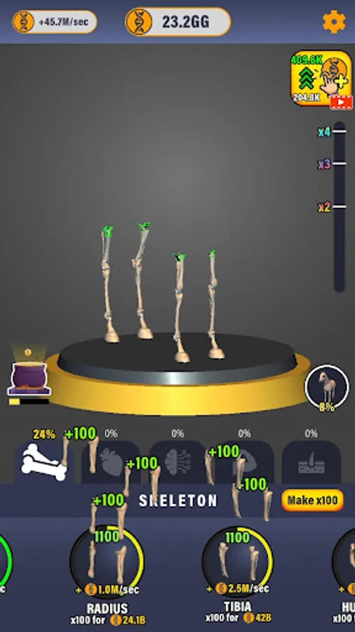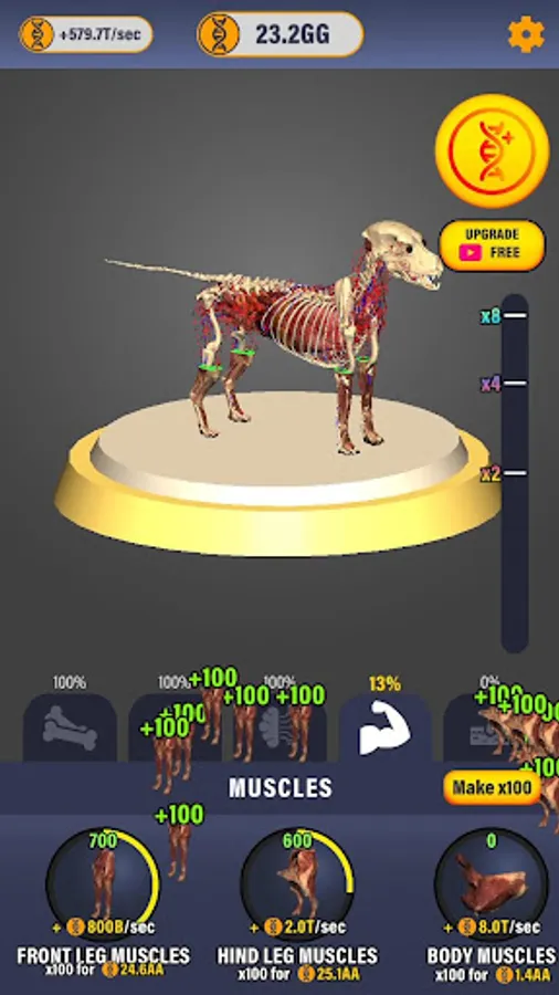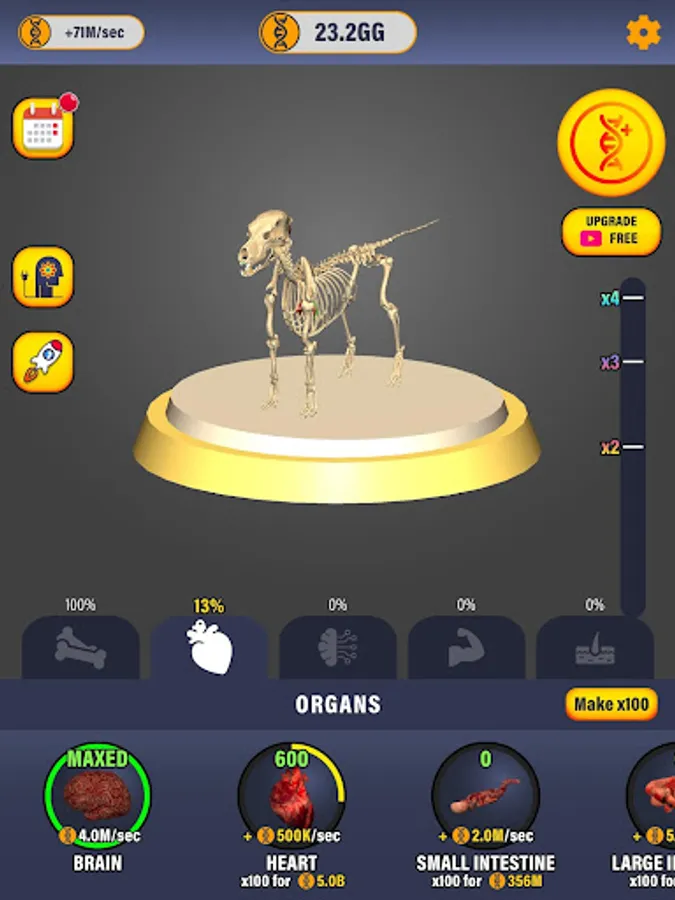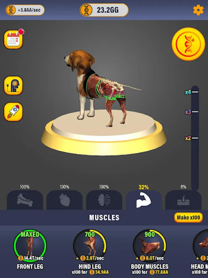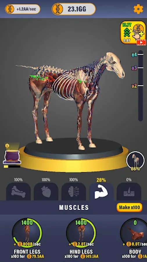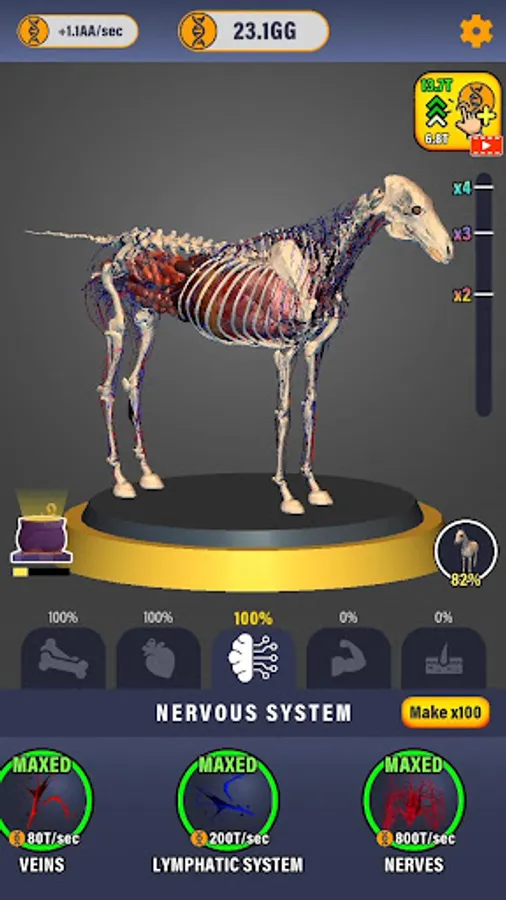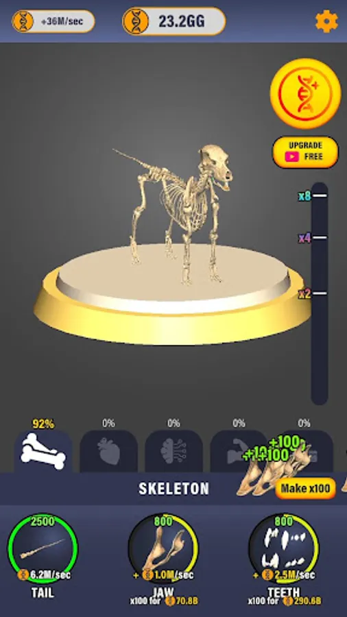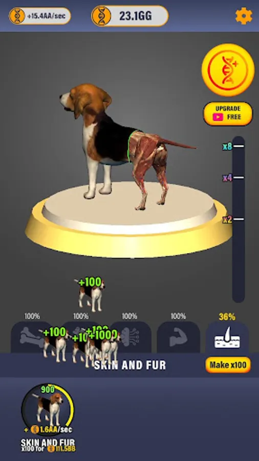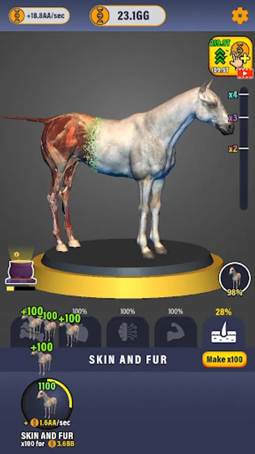 In Idle Animals, we give you the unique chance to discover and create the various parts of different animals right from the first cell!