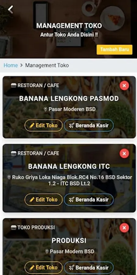 Aplikasi Point Of Sale Banana Lengkong BSD. Aplikasi ini disiapkan sesuai Request dari pihak Client untuk dapat mengelola Cabang, Karyawan, keuangan, Realtime Monitoring dll serta menyesuaikan yang menjadi SOP pada Client.