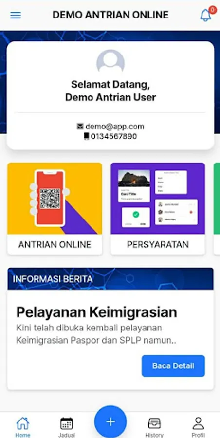 HIK Online Queue Demo is a Demo Application for prospective Applicants on Corporate / Institution Client Service Services including Online Queue Service Booking, SELF Check-In, Application Status Check, News Information, Complaints and others. This application can be connected to the Offline Queuing HIK Application (Web Application) at the Service location, it can also be linked to the Offline Queuing Application that has been used by the user.