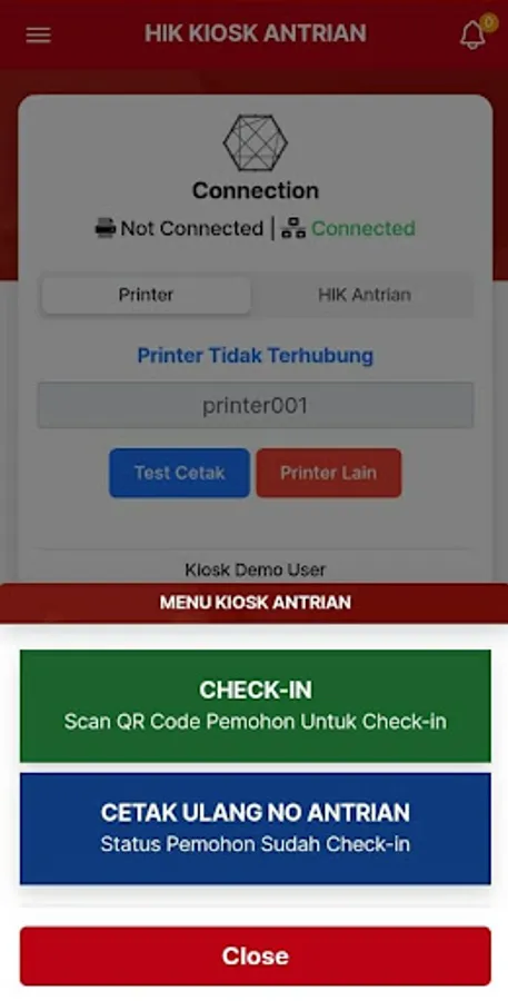 Application specifically designed for the use of Online Queue number Print Officers (HIK Online Queue) and can also be used as a substitute for a print queue Kiosk Machine.
