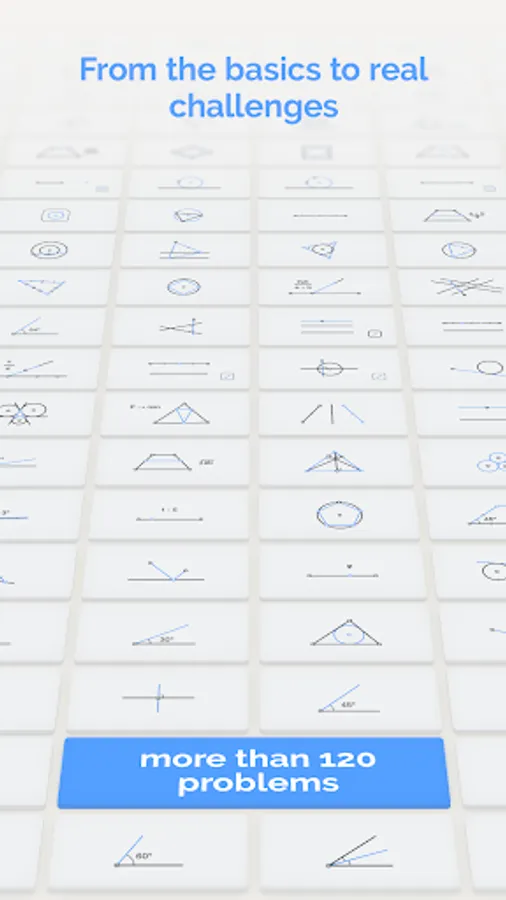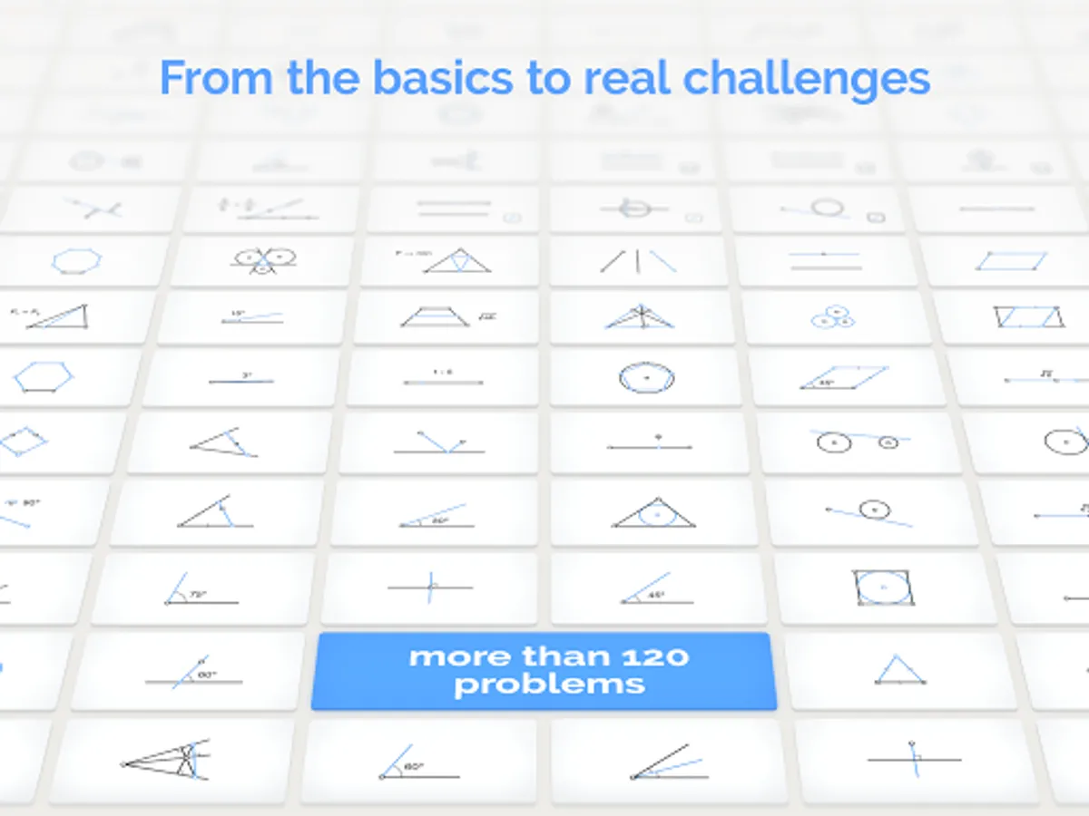 Euclidea is a brilliantly original way to learn about, explore and have fun with Euclidian Constructions! Your task is to solve interesting challenges by building geometric constructions with a straightedge and compass. If you design the most elegantly simple solutions in the least number of moves, you’ll earn the highest scores. Solutions are scored in lines (L) and elementary Euclidean constructions (E).