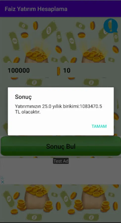 Thanks to this application, you will be able to find out the return of your main money in the desired year with a fixed% interest.