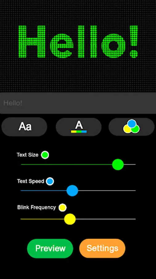 You can choose text and background colors, text speed and direction. There are different types of effects such as Blink effects, animated background and many more options so you can adjust it to your led matrix app preference.