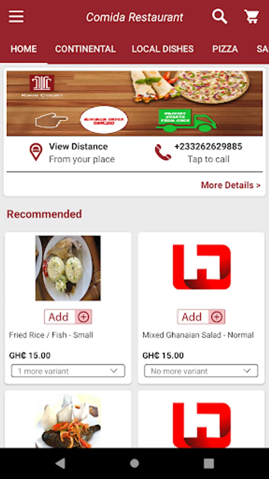 Comida Order Screenshots