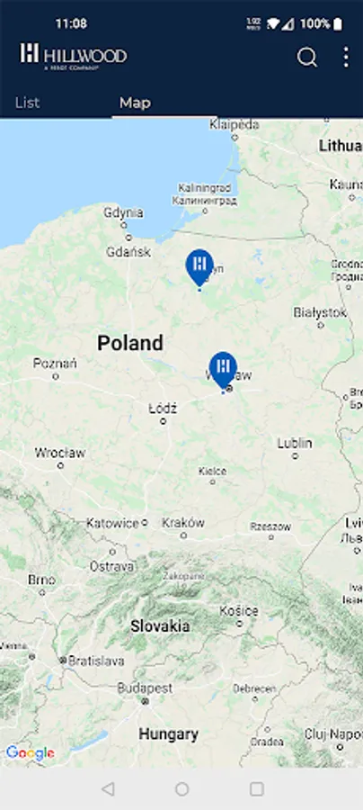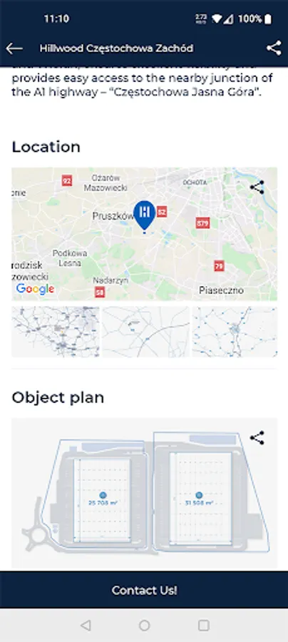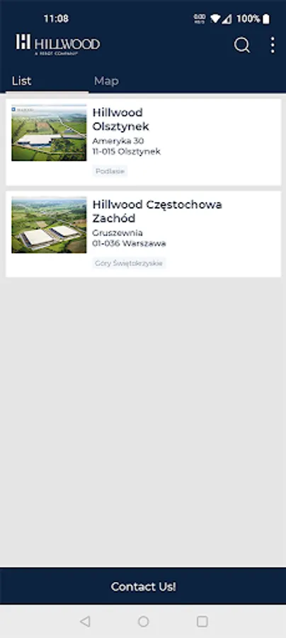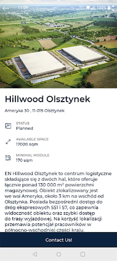 The application allows you to check all available Hillwood warehouse spaces throughout Poland and see the available marketing materials for individual properties, including virtual walks, 360 panoramas, e-brochures, real estate plans, photos and visualizations.
