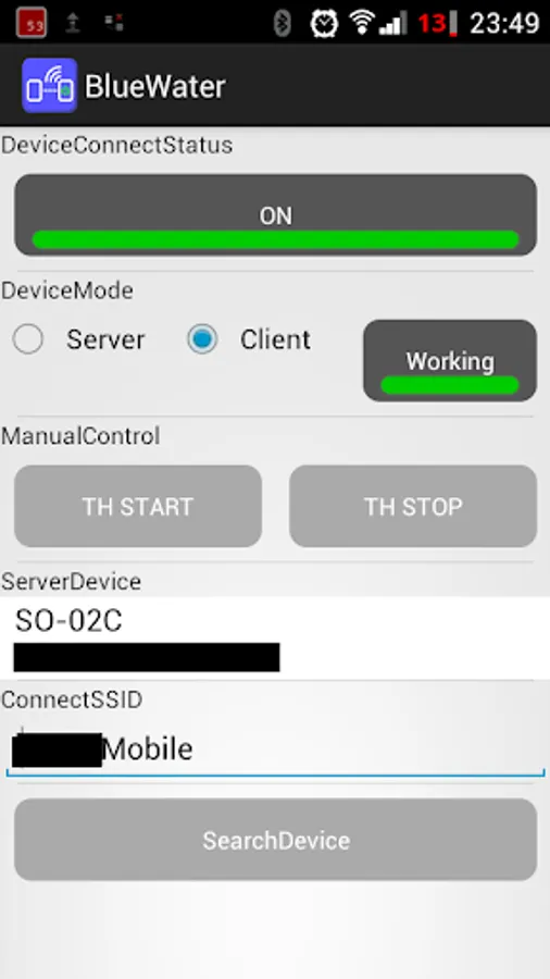 Smartphone to tethering (server)