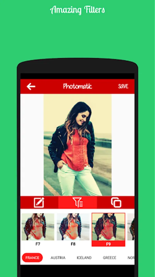 After editing a photo user can save and share this photo on facebook/twitter/instagram directly from the app. Save photos will be stored in phone gallery in the "PhotoMatic" folder.