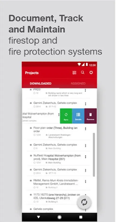 Hilti’s Documentation Manager is a cloud-based system that provides a simple, easy-to-use process for documenting, tracking, and maintaining firestop and fire protection systems throughout the construction and maintenance phase of the facility. The Documentation Manager solution offers functionality for project management, documentation, and reporting. Projects are created and managed on the back office website, where the back office user can assign additional users, upload product data, approval systems & engineering judgments, 2D floor plans, and define custom or pre-defined input field descriptions to track installed items. Once in the field, the installer can use the app on a standard smartphone or tablet device to capture the relevant information for the installation. The app allows the user to easily update the data input fields, capture multiple photos for each installed item, scan QR Codes on Hilti identification labels, and mark the location of the item on a 2D floor plan. A customized or standard report can be produced to show the in-progress or completed status of the recorded items.