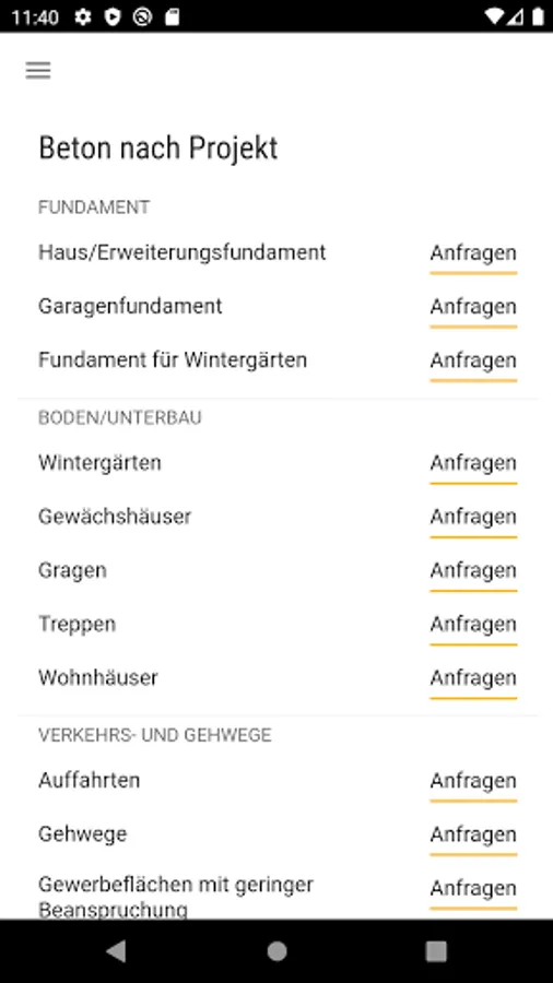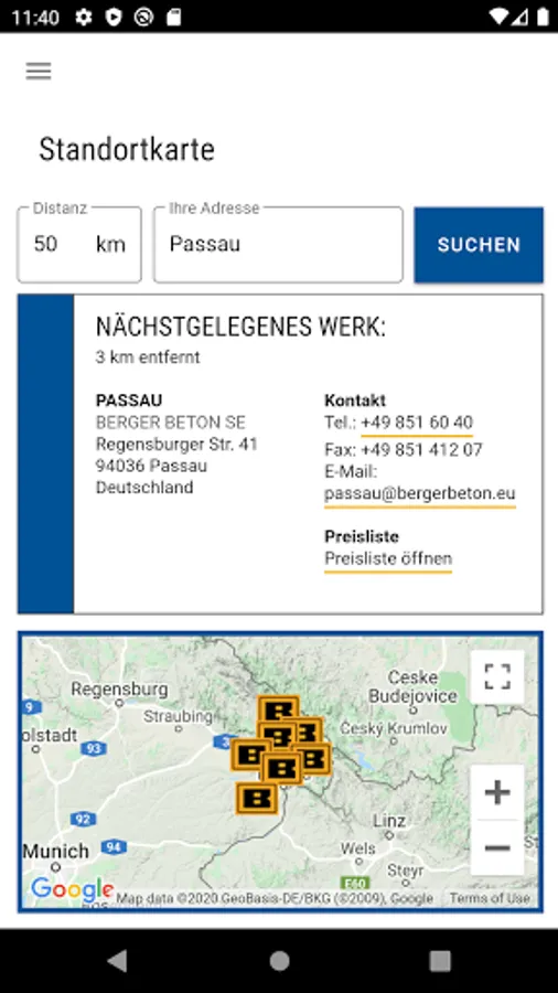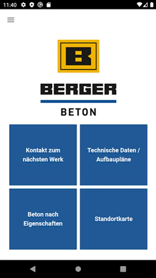This app contains a lot of information about Berger Beton locations and tools for easy ordering. The required volume of concrete can be determined with a volume calculator, and the required type of concrete can be determined using an ordering aid based on properties or project.