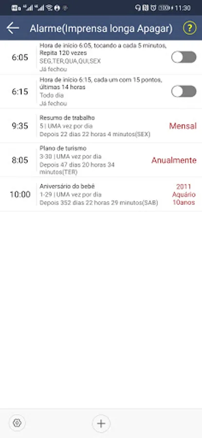 A custom alarm clock supports a monthly report (like a salary setting), an annual report (like a birthday set)