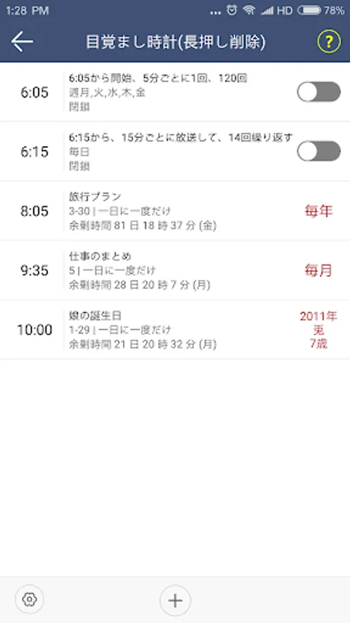 This is a single open-ended alarm clock that broadcasts with prelude sounds, ending themes, background music and time composition. For example, train on time