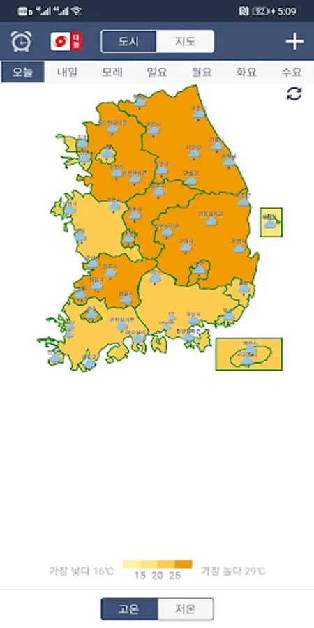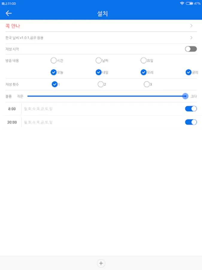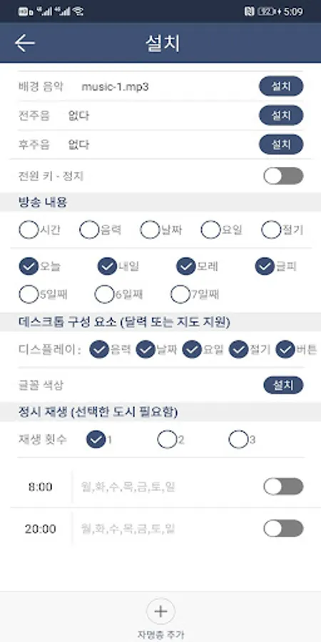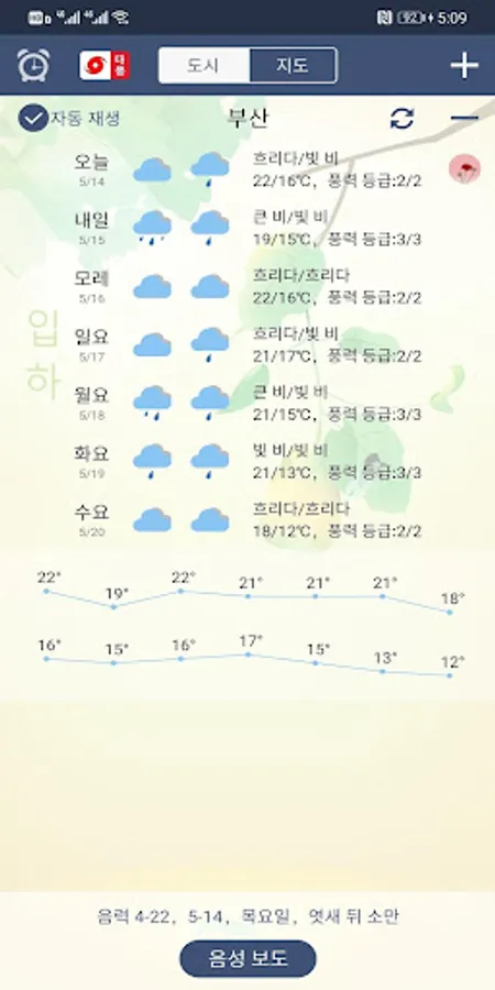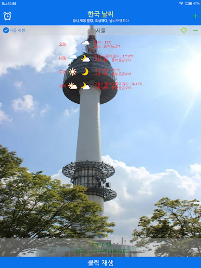 방송보도하다 내용은 시간, 날짜, 7 날씨가
