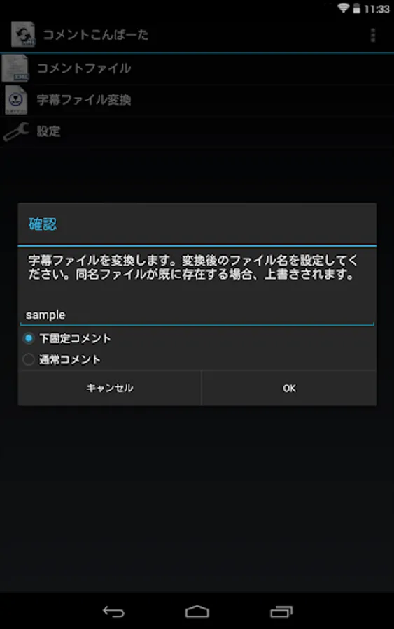 ・ファイル名には変換対象のファイル名がデフォルトで設定されています。ファイル名を変更しなかった場合、または、変更したファイル名と同名のファイルが既に存在する場合、コメントファイルは上書きされます。