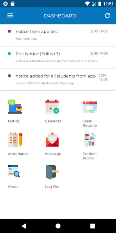 The features of these modules can be accessed distinctively by students, teachers and admin with their respective login. It mainly focuses on making communication efficient by using SMS feature.
