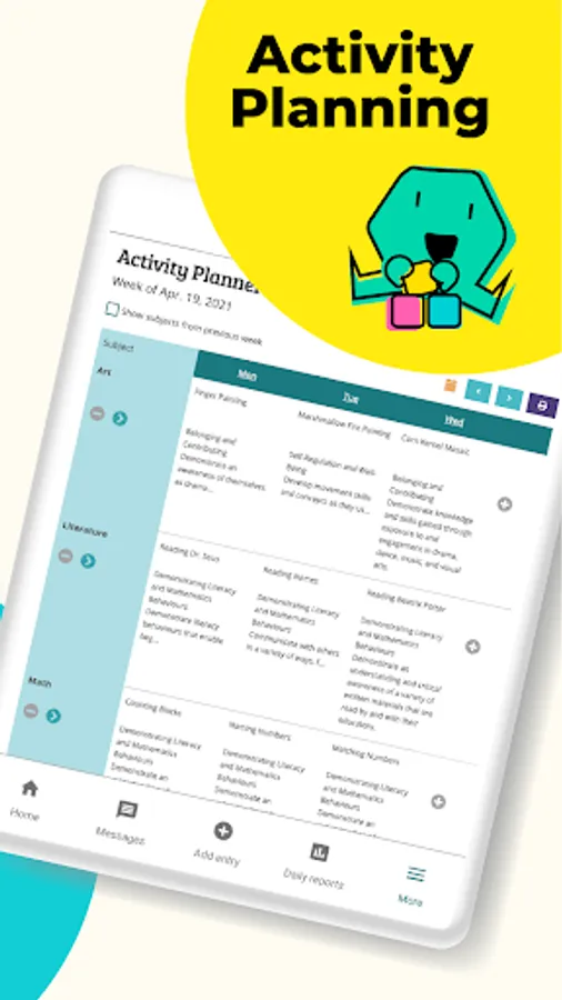 • Framework and curriculum assessment - Align to your state's early learning guidelines and with Reggio, play-based, emergent, and Montessori daycares