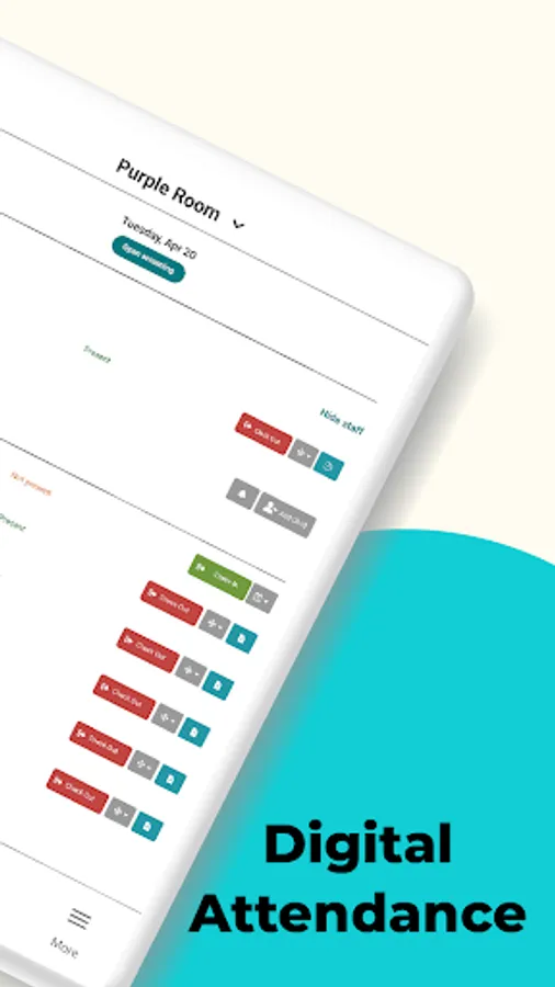 • Attendance tracker - Caregivers can check in children, record drop-off and pick-up
