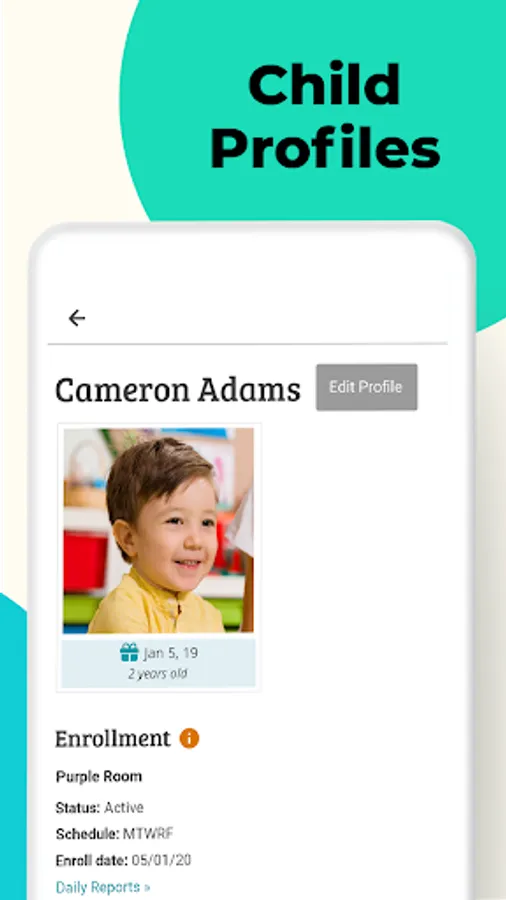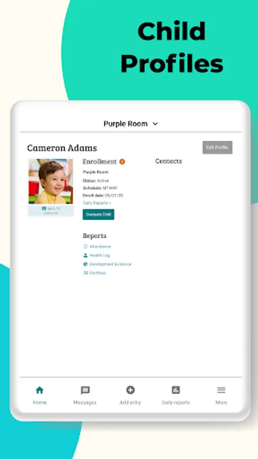 • Centralized parent and child tracking - Directors or parents can update contact, emergency, allergies and health information