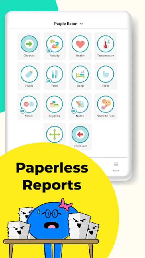 • Classroom organizer - Ensure your preschool is running smoothly with attendance, naps, meals, potty, diapers, and activity reports